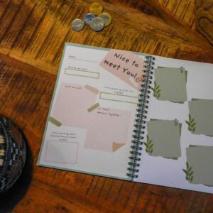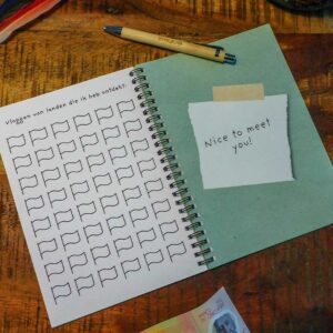 Ook vind je hier invullijsten zoals bijvoorbeeld het inkleuren van de vlaggen van landen waar je mensen van hebt ontmoet. - Onderweg ontmoet je nieuwe mensen die jouw reis rijker maken. Ook zij laten lieve woorden achter, waar je met liefde aan terugdenkt als je weer thuis bent gekomen van je avontuur.