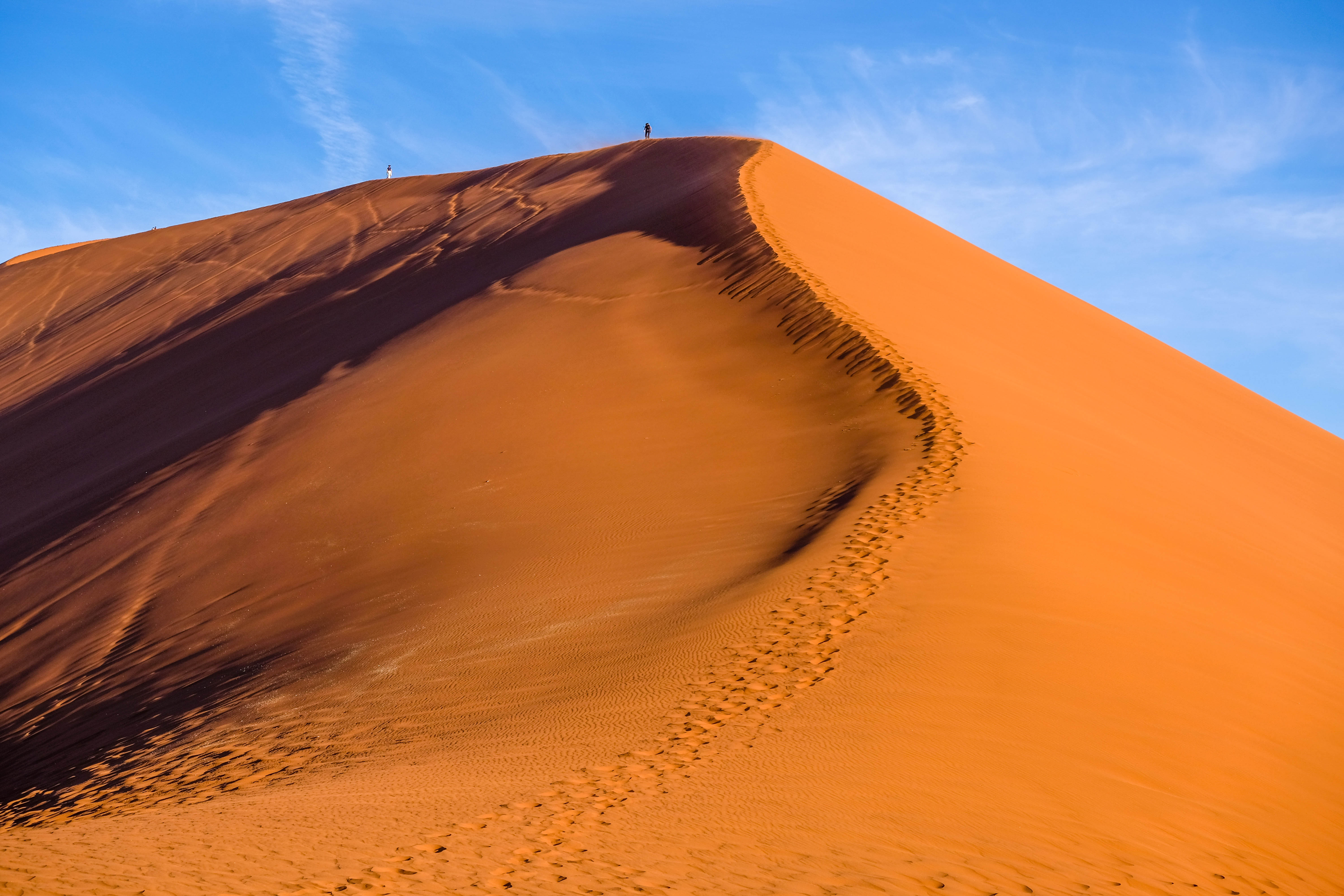 Slapen in Sesriem heeft als voordeel dat je al ín het park van de Sossusvlei bent, waardoor je de grote drukte voor kan zijn. Vroeg opstaan loont: wij waren als één van de eersten in Deadvlei, waar de Sossusvlei bekend om staat. Zó maak je dus een foto waar geen andere toeristen opstaan. In het park heb je enkele beroemde duinen die je kan beklimmen, voor de uitdaging, maar zeker ook voor de uitzichten. Het kan hier flink afkoelen, wij werden in de ochtend met vorst wakker.