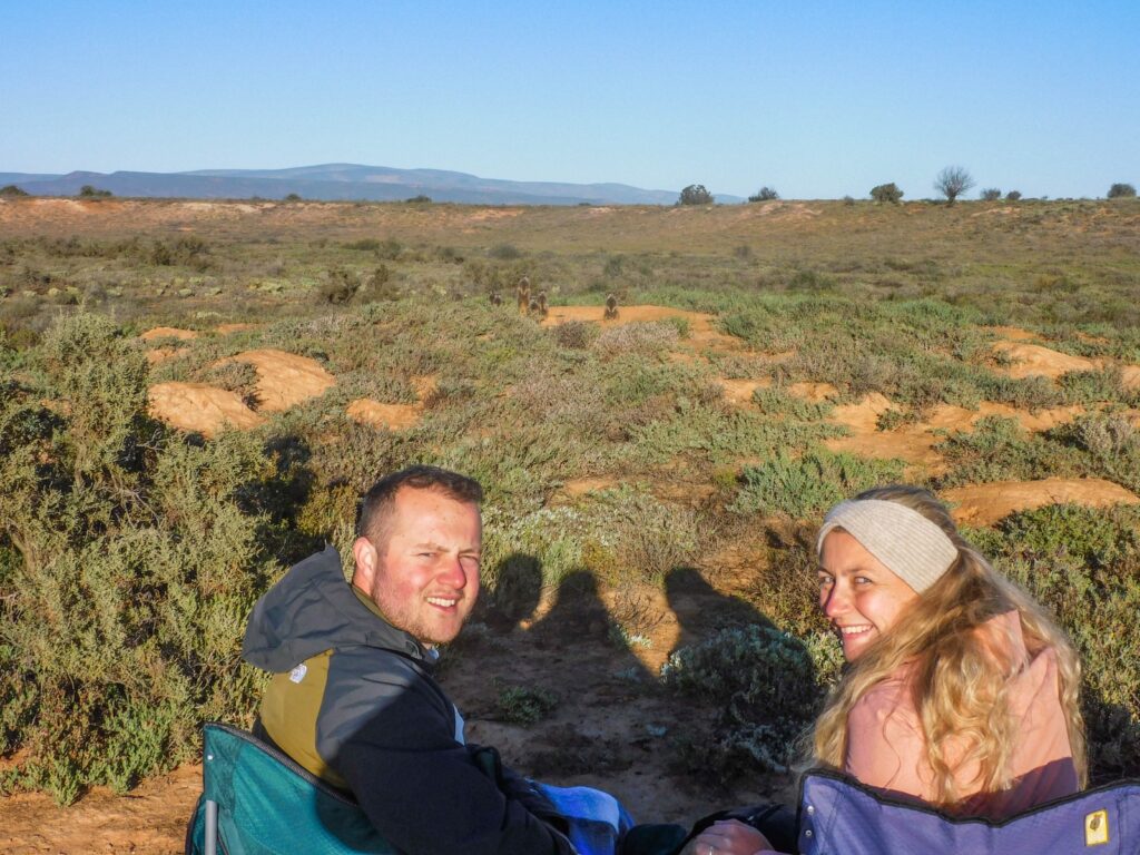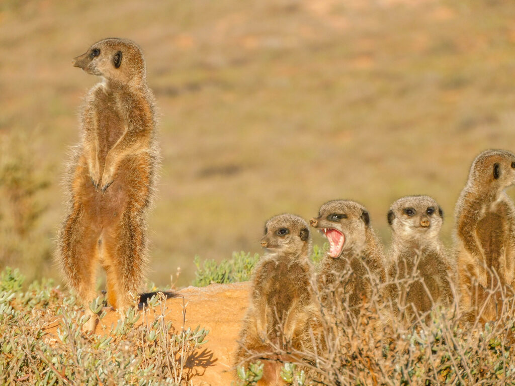 Wij waren te kort in Oudtshoorn om op safari te gaan, maar genoten wel van het geweldige restaurant met uitzicht over het water, waar je hippo’s en krokodillen zag vanaf je tafeltje. Ons hoogtepunt van Oudtshoorn was op een ethische manier stokstaartjes spotten via Five Shy Meerkats. Op sommige dagen moet je uren geduld hebben, kou lijden en stil zijn, wij hadden het geluk dat ze al na een minuut uit hun burcht kwamen.